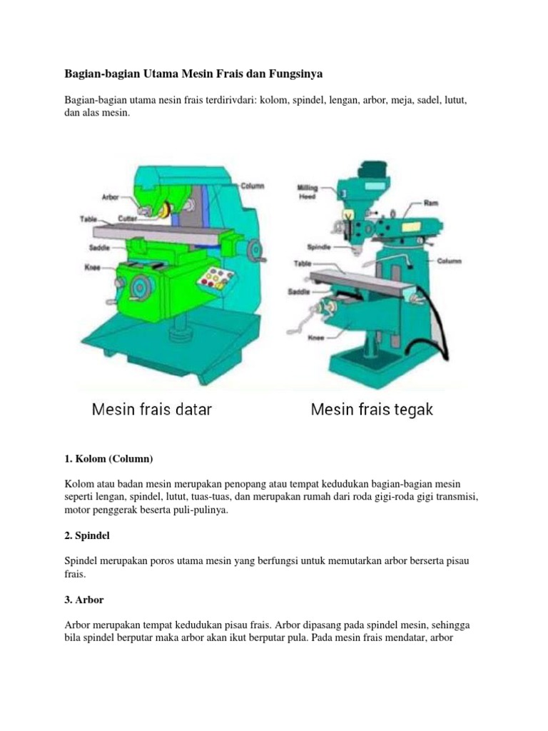 Bagian utam mesin frais dan fungsinya 1 1 head merupakan tempat mekanisme motor penggerak terpasang untuk menggerakkan spindel. Alas mesin base bagian mesin paling bawah. Komponen mesin frais dan fungsinya. Bagian bagian mesin bubut mesin bubut keterangan gambar.