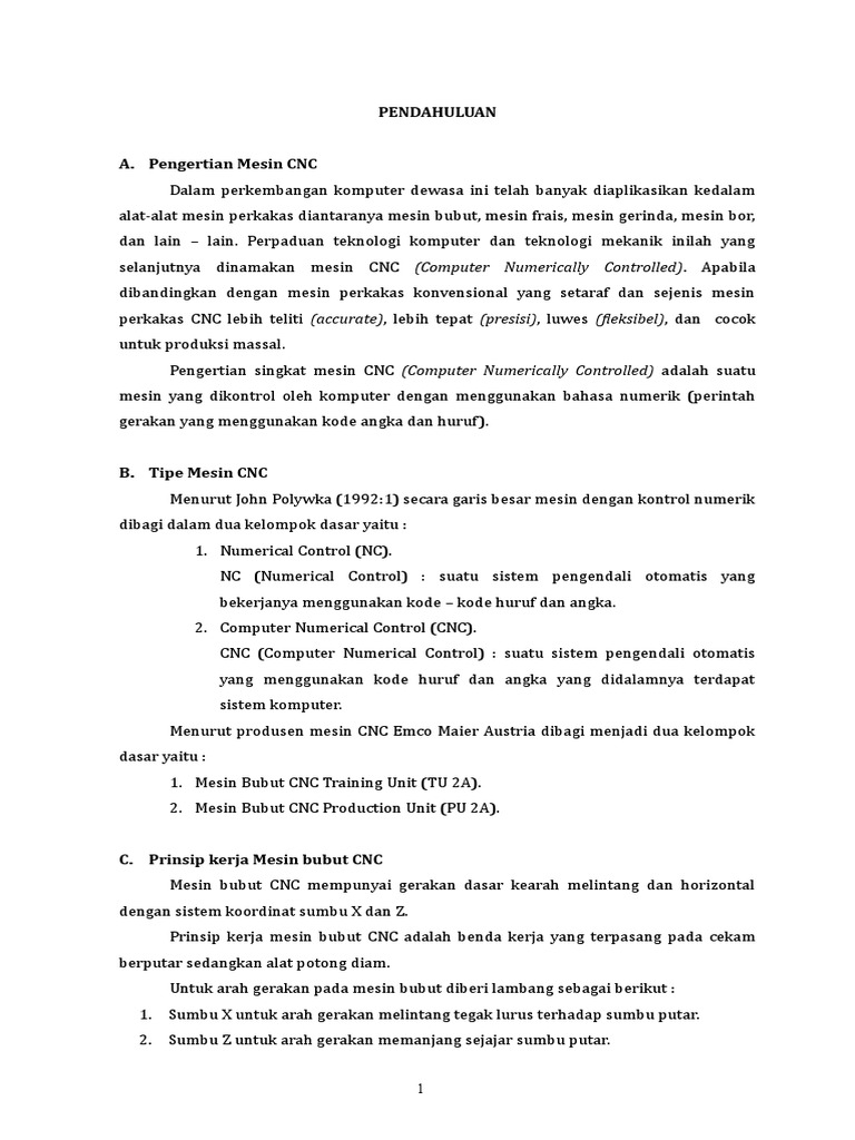 Eretan memanjang sumbu z dengan jarak lintasan 0 300 mm. Pemograman menganut prinsip bahwa sumbu utama tempat pahat pisau frais yang. Beda dari mesin bubut biasa mesin bubut cncmemilki perangkat tambahan motor yang akan menggerakan pengontrol mengikuti titik titik yang dimasukkan ke dalam sistem oleh perekam kertas. Kedudukannya berada pada alas tersebut diikat dengan baut dan mur.