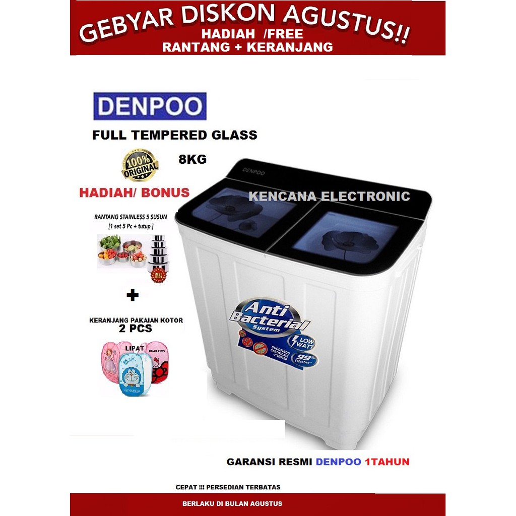 Jual denpoo mesin cuci 2 tabung 8 kg dengan harga terjangkau. Simple nga ribet dan cukup untuk mencuci baju ala ala anak kosan. Sekian review mesin cuci 2 tabung kali ini. Aktif 11 jam lalu.