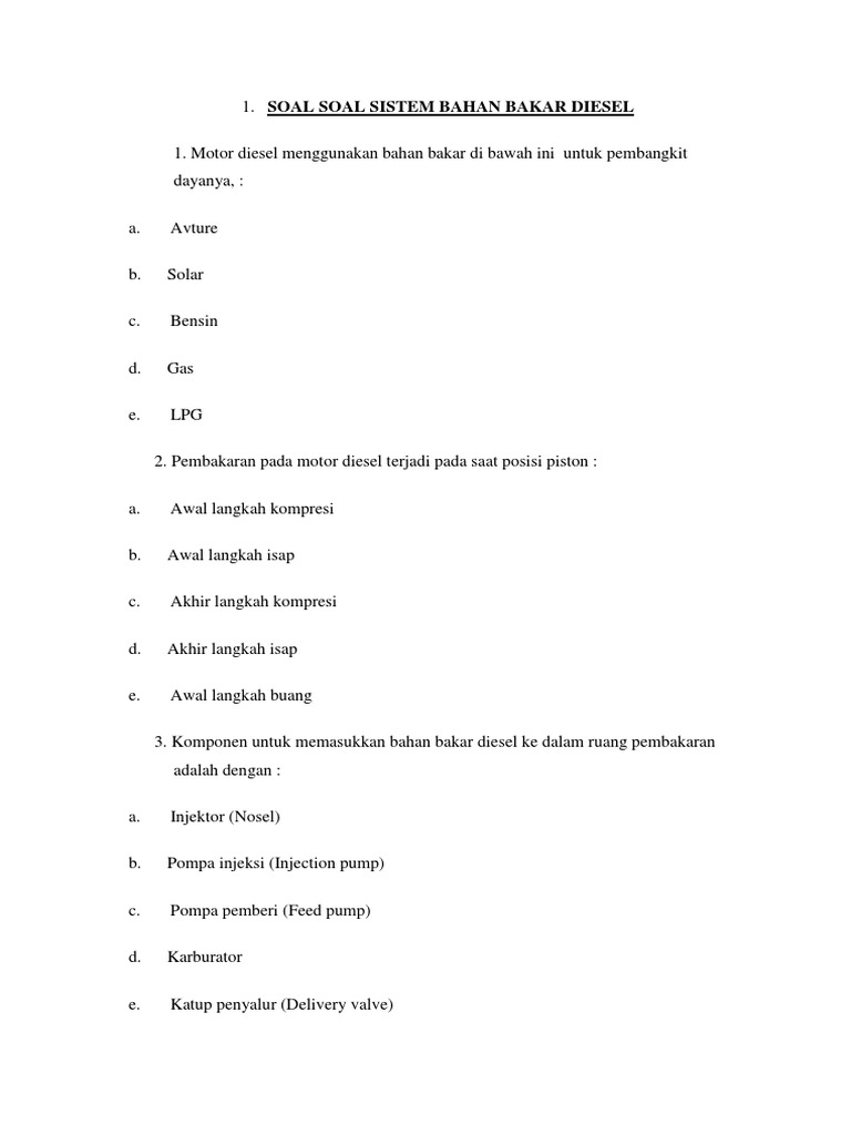 Motor diesel menggunakan bahan bakar di bawah ini untuk pembangkit dayanya. Motor diesel menggunakan bahan bakar di bawah ini untuk pembangkit dayanya. Dulu cukup banyak kendaraan yang menggunakan mesin jenis ini namun semakin ke sini jumlahnya semakin berkurang. Sifat bahan bakar pada diesel engine.