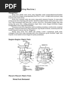 Kebalikan dengan mesin frais horizontal pada mesin frais ini pemasangan spindel nya pada kepala mesin adalah vertical p ada mesin frais jenis ini ada beberapa macam menurut tipe kepalanya ada tipe kepala tetap tipe kepala yang dapat dimiringkan dan type kepala bergerak. Meja pada mesin ini terhubung dengan lutut yang dapat digerakkan secara vertikal sejajar dengan kolom utama mesin. Mesin frais adalah mesin tools yang digunakan secara akurat untuk menghasilkan satu atau lebih pengerjaan permukaan benda dengan menggunakan satu atau lebih alat potong. Sobat mesin pada artikel kali ini kita akan membahas mengenai jenis jenis mesin frais.